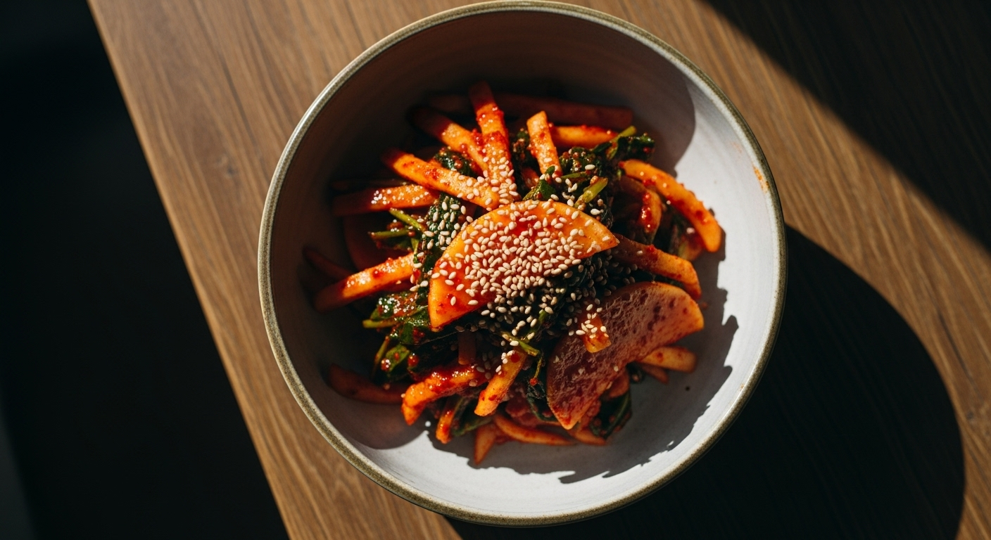 이 복합적인 맛이 밥(탄수화물)과 만났을 때 폭발적인 시너지를 내는 거예요. 또, 아삭하게 씹히는 식감이 주는 즐거움도 무시 못 한답니다.기름진 음식과 함께 먹으면 입안을 깔끔하게 리셋해줘서 음식이 계속 들어가게 만드는 마성의 매력까지 갖췄어요.