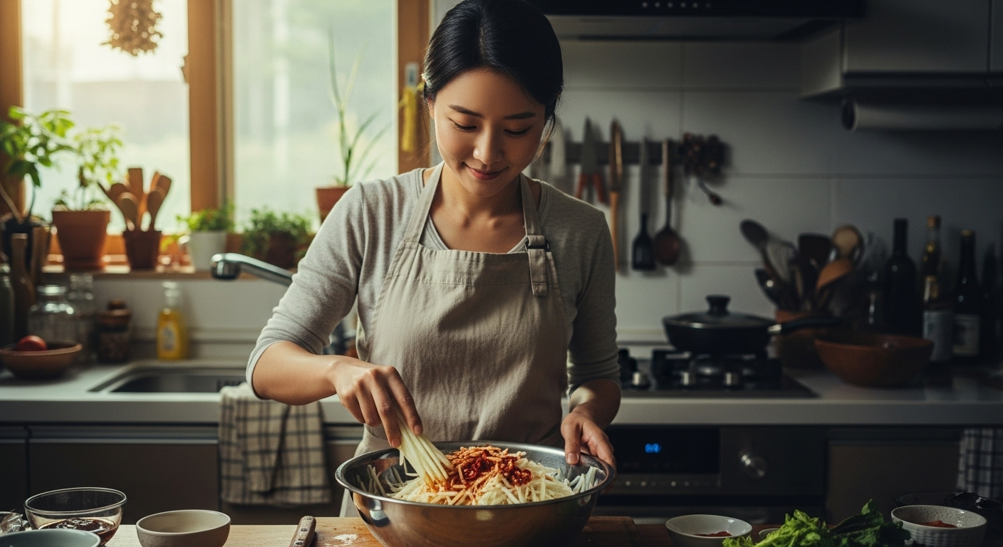 안녕하세요! 오늘따라 뜨끈한 밥에 아삭한 무생채 듬뿍 넣고 쓱쓱 비벼 먹고 싶지 않으신가요?막상 만들려고 하면 무에서 쓴맛이 나거나, 물이 흥건하게 생겨서 속상했던 경험, 다들 한 번쯤 있으시죠?오늘 제가 그 고민 싹 해결해 드릴게요! 10분 만에 뚝딱, 식당 이모님 손맛 저리 가라 하는 '실패 없는' 무생채 비법, 지금부터 시작합니다!