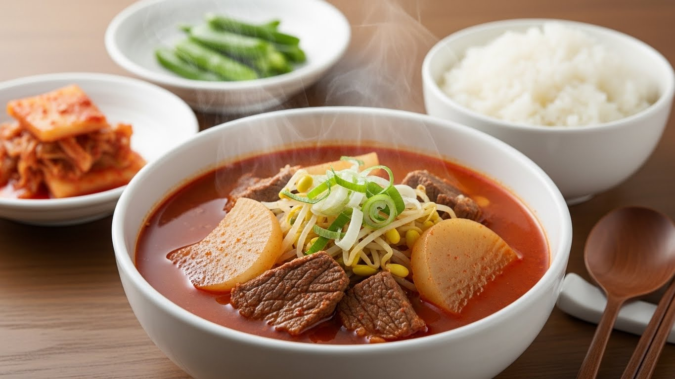 보통 소고기무국 하면 맑고 시원한 맛을 떠올리시는 분들이 많지만, 경상도에서는 고춧가루를 팍팍 넣고 콩나물까지 더해 육개장처럼 칼칼하게 끓여 먹는답니다. 경상도식 소고기무국 맛있게 하는법의 핵심은 고기를 볶아 자연스러운 고추기름을 내고, 무의 시원함과 콩나물의 아삭함을 동시에 살리는 것에 있어요.